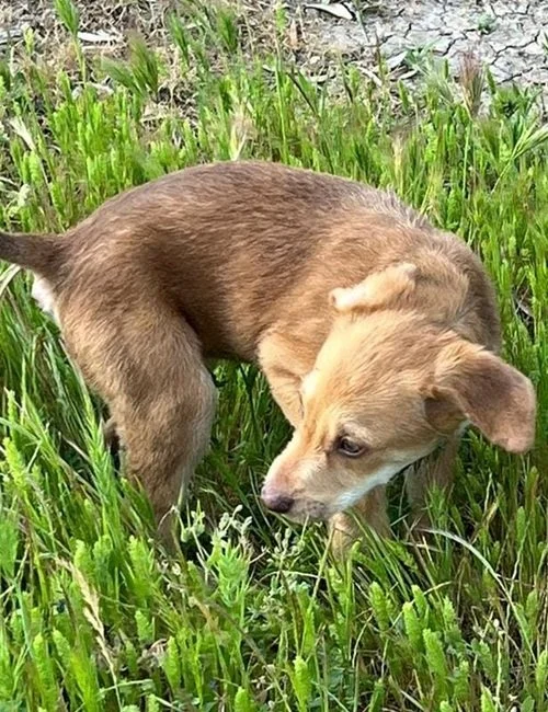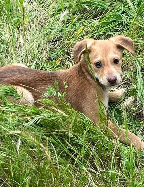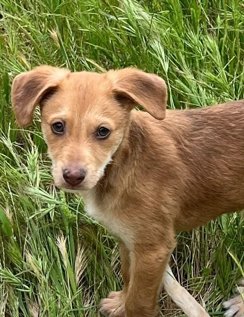 Da wir keine Informationen zu den Elterntieren haben, können wir ihre Rassemerkmale und ihre spätere Größe nur schätzen. Optisch vermuten wir Podenco-Anteile, sicher sagen lässt sich das jedoch nicht.