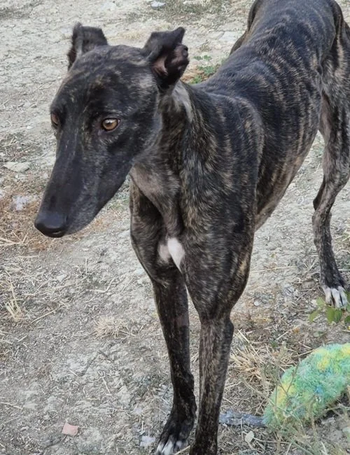 Candela ist eine wunderschöne, gestromte Galga-Dame, geboren im Januar 2023. Mit ihren eleganten 69 cm Schulterhöhe, 58 cm Körperlänge und einem zarten Halsumfang von 36 cm sowie Brustumfang von 71 cm bringt sie alles mit, was Windhundfreunde lieben. Aktuell wiegt sie 27 kg und ist kastriert.