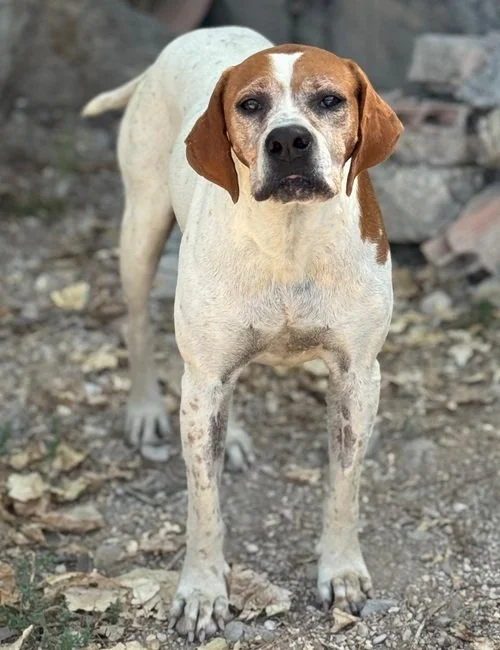 Die freundliche Pointer-Hündin Esther wurde im August 2025 in einem Dorf in Spanien gefunden und lebt seither im Tierheim. Geboren wurde sie im August 2020 und ist somit etwa fünf Jahre alt. Sie wiegt rund 24 kg, misst 54 cm Schulterhöhe und ist 52 cm lang. Esther ist kastriert, mehrfach geimpft (inkl. Tollwut) und bei bester Gesundheit.
