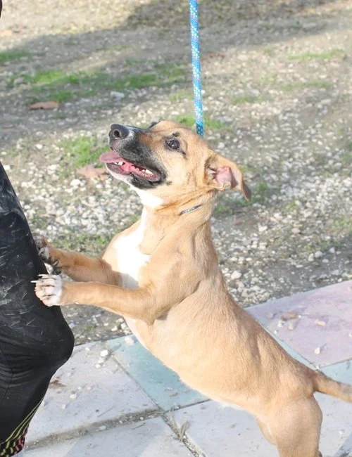 Die süße braun-weiße Mischlingshündin Lena wurde im November 2024 geboren und hat trotz ihres jungen Alters bereits eine bewegende Geschichte hinter sich. Ein Mädchen fand sie allein auf einer Straße Spaniens in der Nähe, hatte Mitleid und nahm sie bei sich auf. Doch irgendwann konnte sie sich nicht mehr um die kleine Hündin kümmern, und so kam Lena ins Tierheim. Seitdem wartet sie geduldig darauf, dass sie gesehen wird.