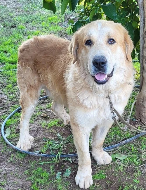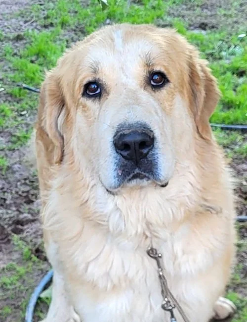 Leon ist ein etwa 2,5 Jahre alter Golden Retriever–Mastin-Mischling, kastriert, rund 76 cm groß und bringt 44,5 kg pure Freundlichkeit mit. Sein helles Fell und sein liebenswertes Teddybär-Gesicht machen ihn zu einem echten Hingucker.