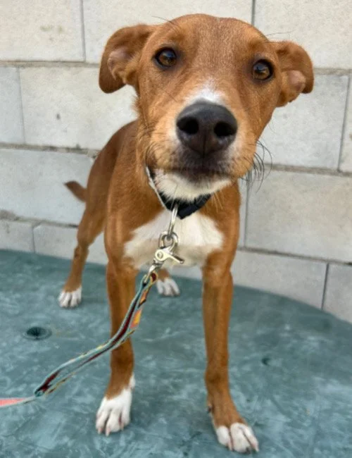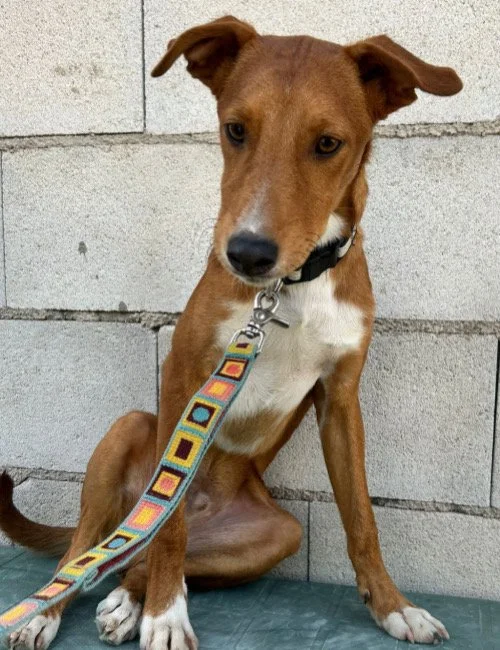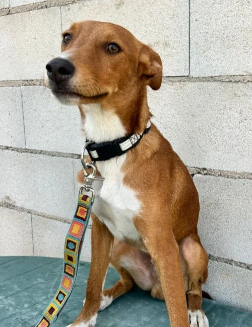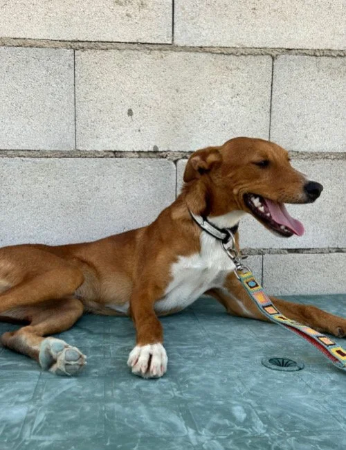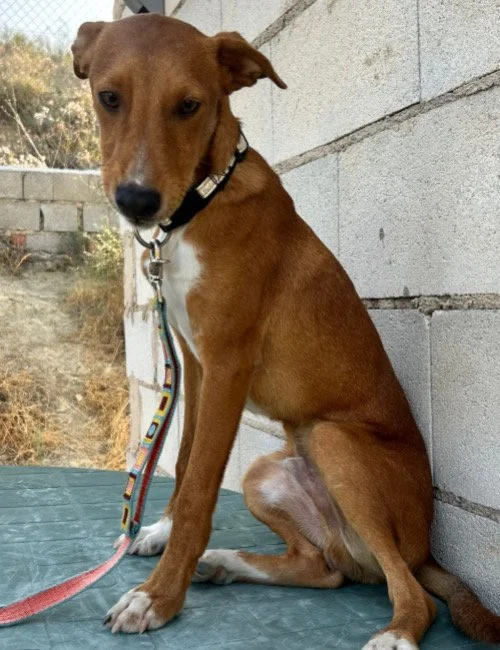 So beginnt die Geschichte von Lince, einem jungen Podenco-Rüden, geboren im Februar 2025, etwa 49 cm hoch und zarte 10 kg leicht. Als er von einem anderen Hund attackiert wurde und sein Leben in Gefahr war, bat die Frau, bei der er Zuflucht gesucht hatte, um Hilfe. Noch in derselben Nacht kam Lince ins Tierheim.