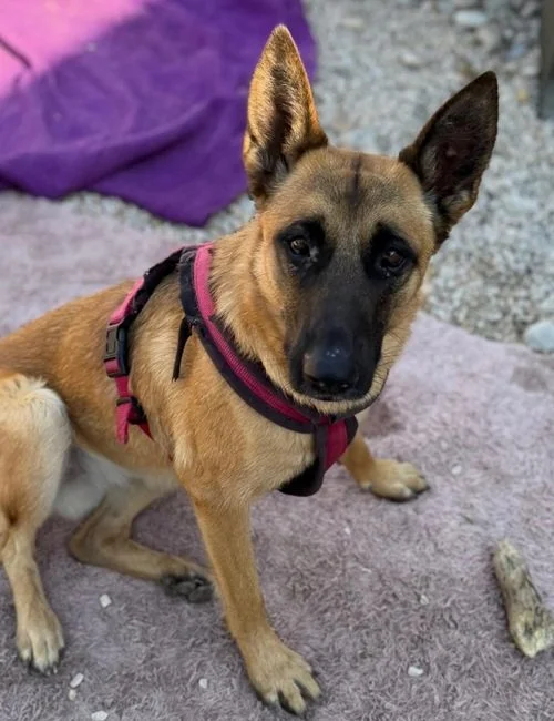 Lola ist eine junge Belgische Schäferhund-Hündin, geboren im Dezember 2023, die derzeit in einem Tierheim in Murcia, Spanien, lebt und auf ihr endgültiges Zuhause oder eine erfahrene Pflegestelle wartet. Mit einer Schulterhöhe von etwa 51 Zentimetern und einem Gewicht von rund 22 Kilogramm bringt sie die sportliche, elegante Erscheinung mit, die für ihre Rasse typisch ist. Belgische Schäferhunde gelten als besonders intelligent, sensibel und arbeitsfreudig – Eigenschaften, die auch Lola deutlich zeigt.