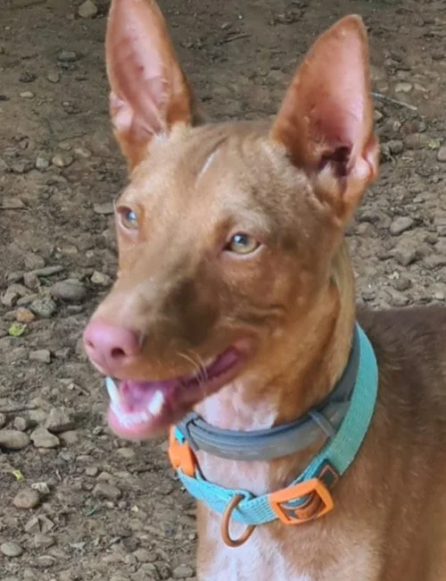 Mango ist nicht nur ein junger, wunderschöner Podenco Bub– er ist ein echtes Wunder. Gefunden wurde er in einer abgelegenen Gegend bei Córdoba /Spanien– gemeinsam mit drei toten Artgenossen. Mango war der einzige, der überlebt hat. Seine drei Freunde wurden erhängt. Vermutlich konnte er sich aus einer Schlinge befreien – wie durch ein Wunder. In schlechtem Zustand kam er in eine Tierklinik, wo seine Reise in ein neues Leben begann.
