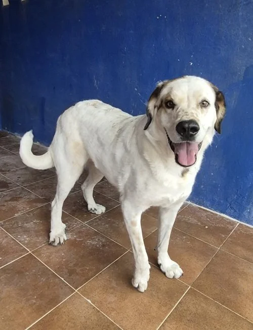 Maya ist eine wunderschöne, helle Mastin-Mischlingshündin mit einer zart gefleckten Nase und einem ebenso besonderen Wesen. Geboren im Februar 2021, misst sie ca. 66 cm Schulterhöhe und wiegt rund 40 kg. Sie ist gechipt, vollständig geimpft, kastriert und negativ auf Mittelmeerkrankheiten getestet.
