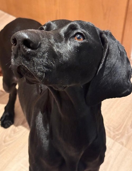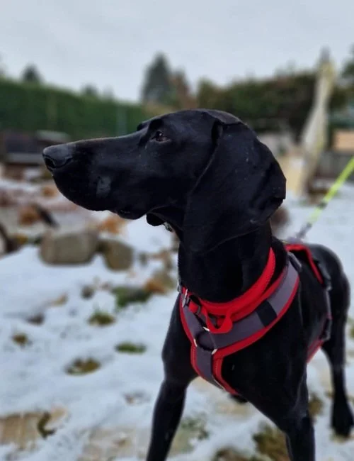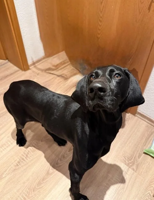 Morena, geboren am 21.05.2022, ist eine wunderschöne schwarze Deutsch-Kurzhaar-Hündin, die zuvor bei einem Jäger lebte und anschließend in ein spanisches Tierheim nach Murcia kam. Seit dem 7. Februar 2026 befindet sie sich in Deutschland und wird als Zweithund und in einer Wohnung gehalten. Morena wurde im Januar 2026 kastriert; die Kastration ist restlos gut verheilt. Morena zeigt sich hier als eine durchweg friedliche, unglaublich liebe und freundliche Hündin.