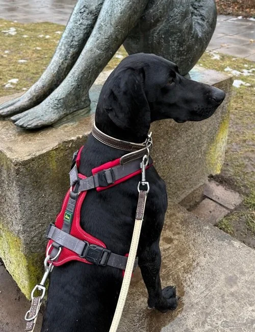 Im Auto fährt Morena ruhig und entspannt mit, legt sich ab und schaut gelegentlich interessiert aus dem Fenster. Draußen zeigt sie – typisch Deutsch-Kurzhaar – Interesse an allem, was sich bewegt, besonders an Vögeln. Sie ist aufmerksam, neugierig und motiviert, braucht aber aufgrund ihrer Unsicherheit in neuen Situationen eine geduldige, souveräne Führung und noch viel Übung und Training. An der Leine zieht sie gelegentlich, doch mit konsequentem, liebevollem Training wird sie sich zu einer zuverlässigen Begleiterin entwickeln. Ihre Lernbereitschaft und ihr Wunsch, mit dem Menschen zusammenzuarbeiten, sind deutlich spürbar.