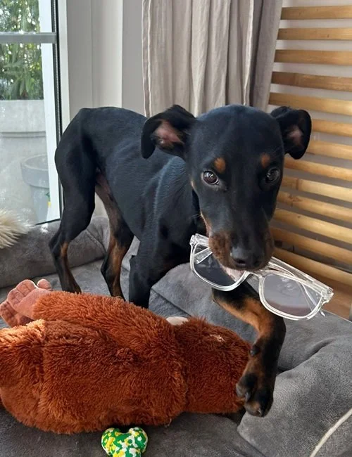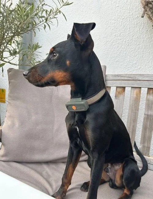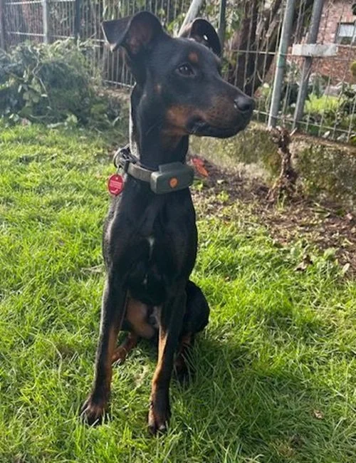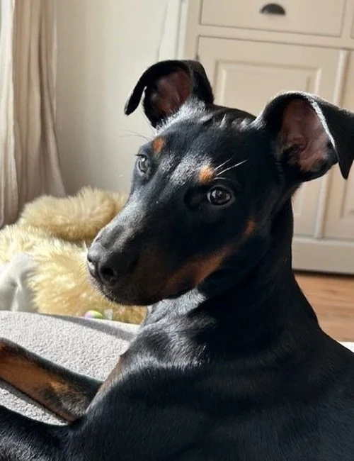 Pluto ist ein junger Pinscher-Rüde, geboren im Juli 2025.
