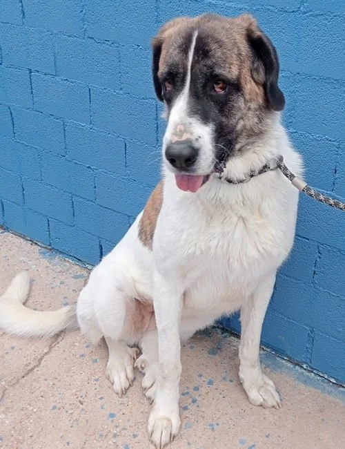 Salsa ist eine dreifarbige Schönheit mit einer eindrucksvollen Erscheinung. Sie ist ca. 74 cm groß und bringt etwa 45 kg auf die Waage – ein typischer Vertreter ihrer Rasse.